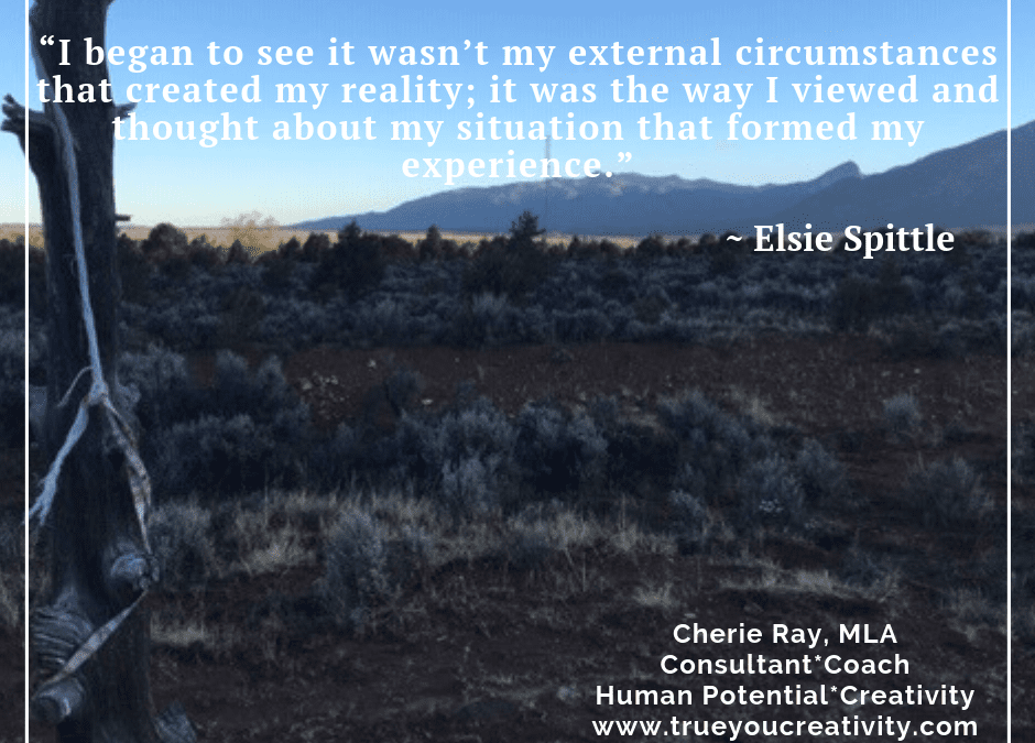 “I began to see it wasn’t my external circumstances that created my reality; it was the way I viewed and thought about my situation that formed my experience.” -Elsie Spittle